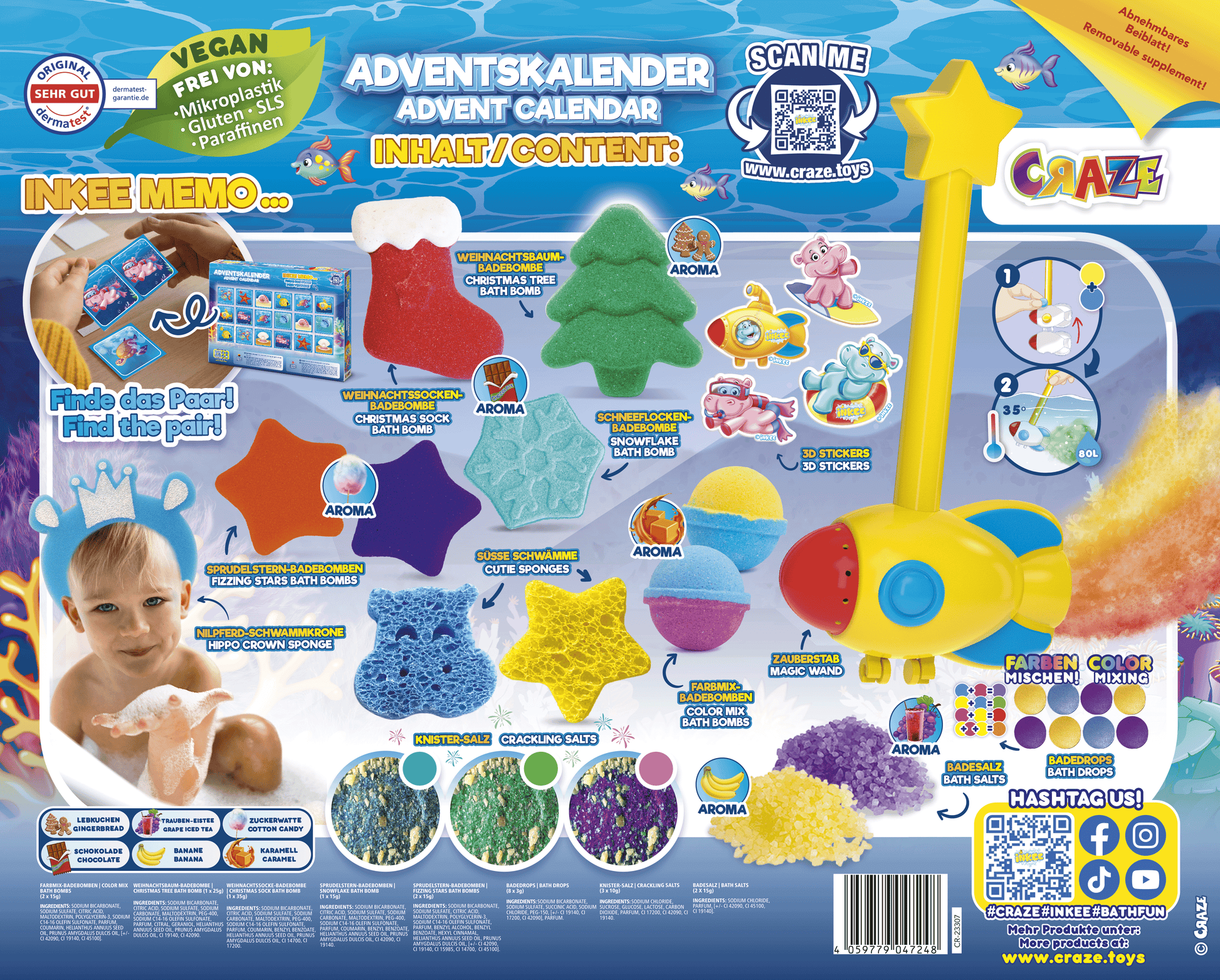 Die INKEE Adventskalender machen aus der Badezeit ein echtes Erlebnis. Ob sprudelnde Badekugeln, bunte Badebomben in verschiedensten Formen oder buntes Badespielzeug. Hinter jedem Türchen der INKEE Adventskalender steckt eine kleine Überraschung für jede Menge Spaß in der Wanne. Während die Kinder eintauchen, haben Eltern auch mal einen Moment zum Durchatmen, ganz ohne Langeweile oder Bildschirmzeit. Alle Inhalte sorgen weit über den Advent hinaus für gute Laune im Badezimmer.