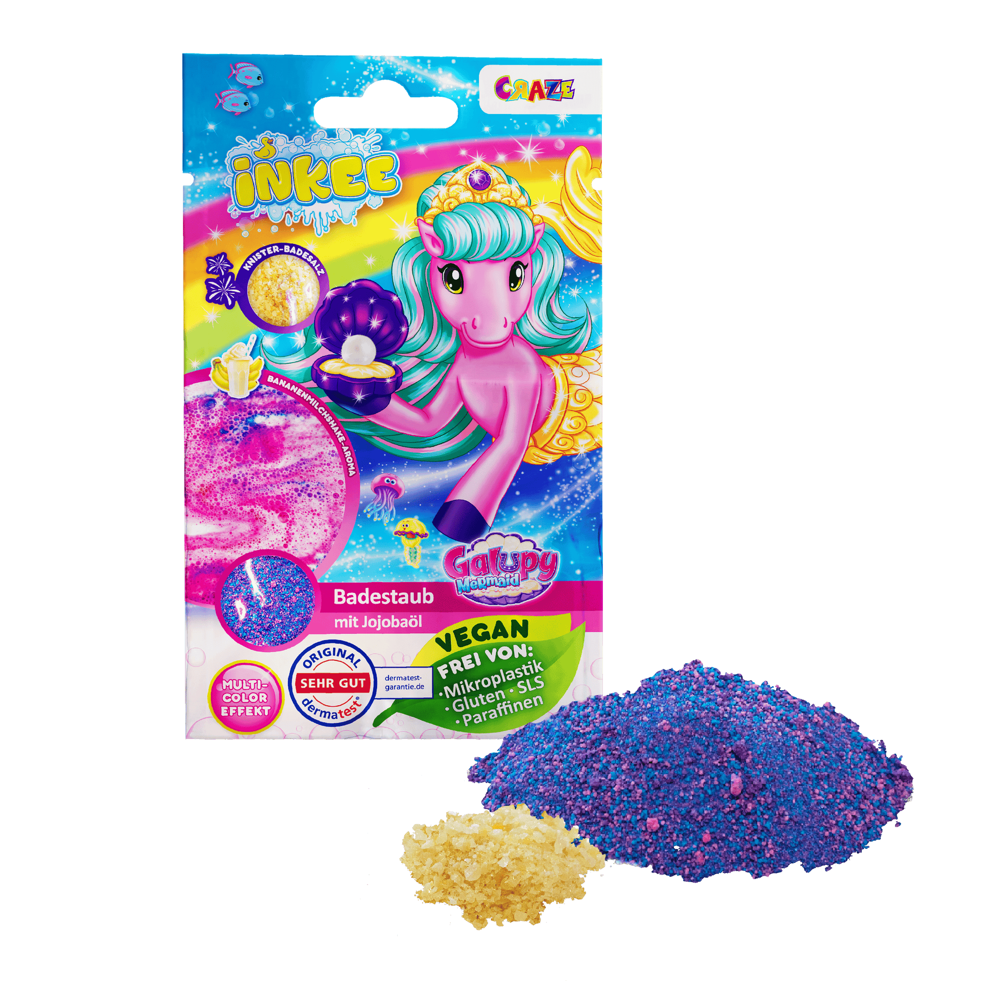 Tauche ein in die bunte Badewelt von INKEE und erlebe tolle Farbeffekte, spannende Überraschungen und fruchtige Düfte. Alle Badezusätze von INKEE sind dermatologisch getestet und auch für besonders empfindliche Haut geeignet.