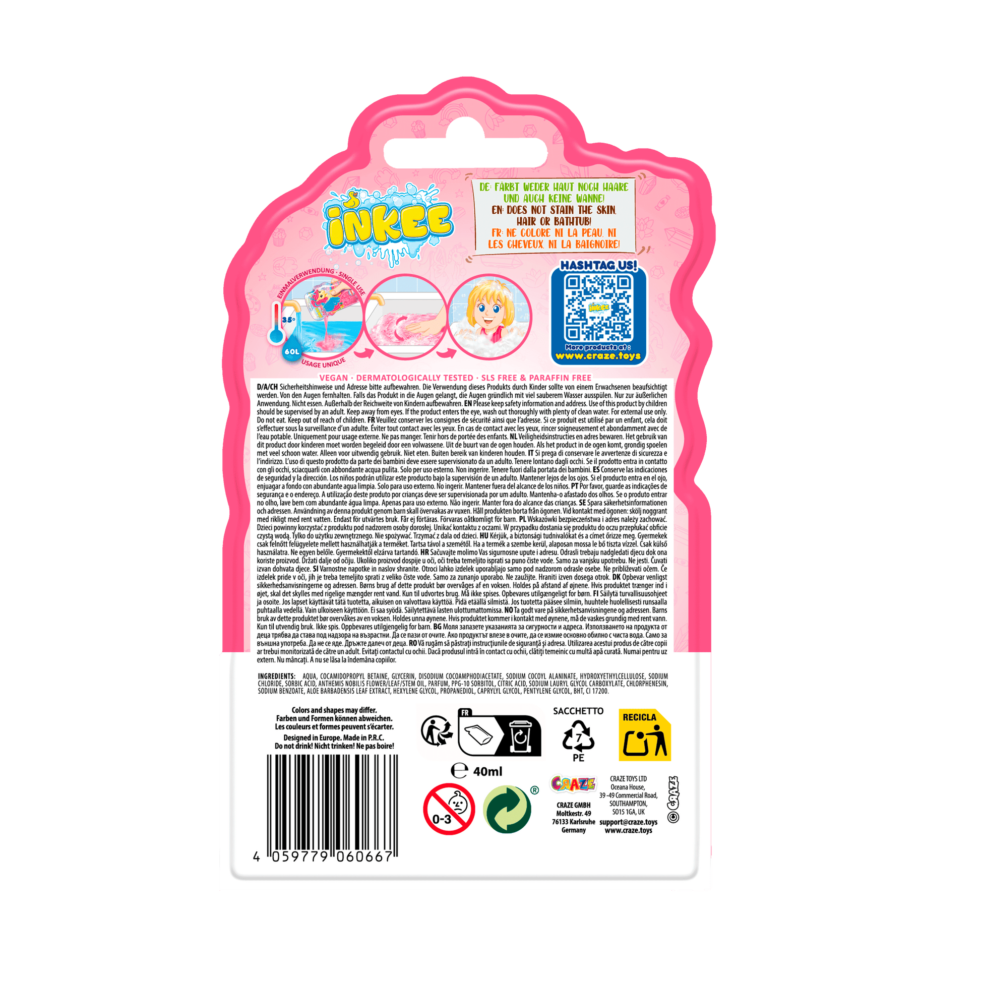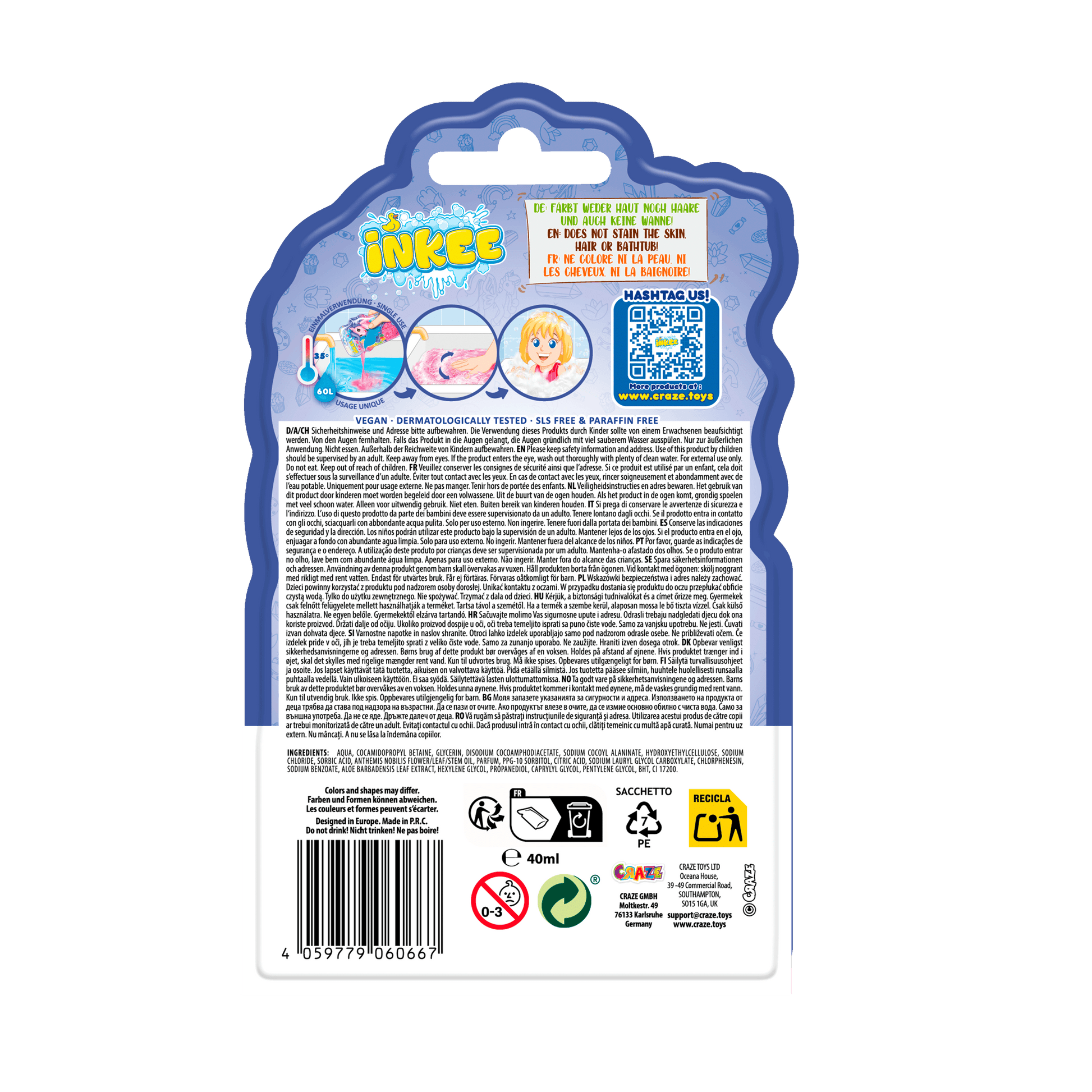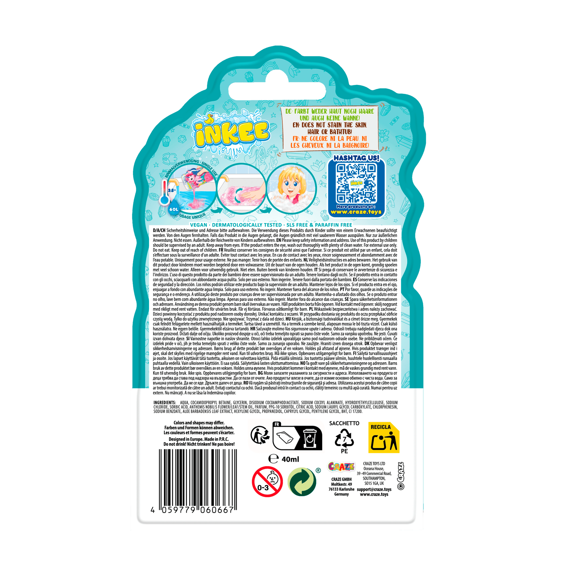 Tauche ein in die bunte Badewelt von INKEE und erlebe tolle Farbeffekte, spannende Überraschungen und fruchtige Düfte. Alle Badezusätze von INKEE sind dermatologisch getestet und auch für besonders empfindliche Haut geeignet.